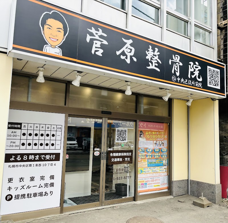 札幌市中央区南1条西10丁目のタイムビル1Fにある菅原整骨院 中央区役所前院です。駅近で平日夜間20時まで営業しており、多くの患者様から高い評価をいただいています。